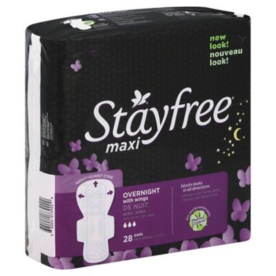Stayfree overnight maxi pads with wings 28 count. We did not find results for: Check spelling or type a new query. Maybe you would like to learn more about one of these?